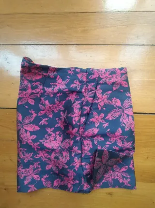 De color rojo, el tono de CH, on lazada al frente tejido de bastante caida. Talla 2 CH en etiqueta y hace 38/40 Medidas de cintura 40 cm. y largo 97 cm.