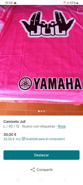 Camiseta de la marca Yamaha con diseño Jull. - Color rosa vibrante. - Talla L (40/12). - Nueva con etiquetas.