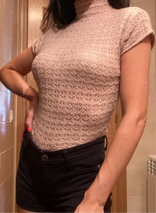 Chaleco de Zara con un diseño delicado, tejido de punto suave y cálido!. - Composición: 7% lana, acrílico, elastano, poliéster. - Talla: S (aunque la etiqueta indica M, talla pequeño). - Cuello alto y manga corta.