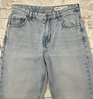 Jeans modelo wide leg ancho en color azul claro, cintura alta y pierna ancha,dos rotos frontales, dos bolsillos delanteros y dos bolsillos traseros. Esta nuevo sin etiquetas. Talla un poco pequeño a pesar de ser una talla 36 también serviría para una talla 34. Medidas:Largo 110cm x Ancho cintura 34cm /Ancho cadera 46cm Composición:100% algodón 🚚ENVÍOS EN MENOS DE 24H🚚