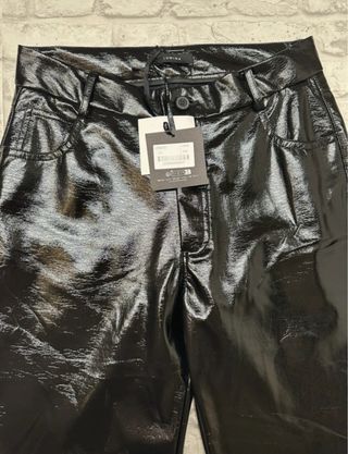 Pantalón de polipiel negro. El bajo tiene cremallera en el interior. Están nuevos con la etiqueta.