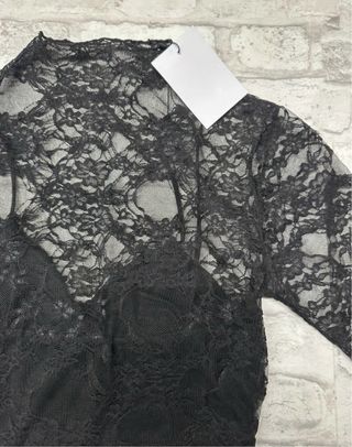 Vestido camiseta 2 en 1 de encaje largo en color negro de la marca italiana Lumina.Esta compuesto por un vestido de encaje pegado en la zona superior,escote en pico y una abertura en la pierna derecha.Una camiseta básica de cuello redondo y mangas de encaje cosidas que puedes llevar por encima o por separado ya que al final al ser 2 en 1 tienes muchas posibilidades de combinarlo.A pesar de ser talla única serviría desde una talla 34 hasta una talla 40 ya que el vestido es muy elástico y se amolda a la perfección y la camiseta es bastante oversize.Esta completamente nuevo con etiquetas listo para estrenar