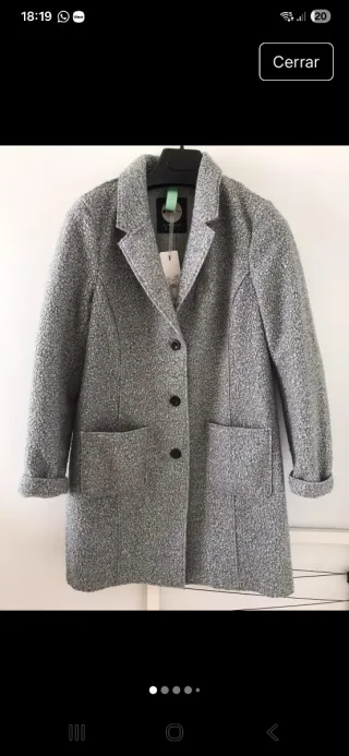 Abrigo de la marca Street One, con un diseño moderno y elegante. Perfecto para añadir un toque de estilo a tu vestuario. - Color gris jaspeado. - Cierre de botones. - Dos bolsillos frontales. - Cuello solapa. - Aún conserva las etiquetas originales. Talla holgada