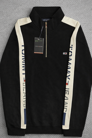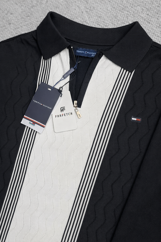 TOMMY HILFIGER Jersey Punto – NUEVO CON ETIQUETAS Prenda 100% original, nueva y sin uso. Incluye etiquetas Tommy Hilfiger y Farfetch. • Talla: L , varias tallas disponibles • 100% algodón • Diseño blanco y negro con panel central texturizado • Logo bordado en el pecho • Media cremallera Modelo elegante y diferente, ideal para look casual premium. Envío rápido y bien protegido.