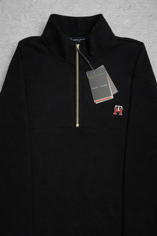 TOMMY HILFIGER Sudadera – NUEVA CON ETIQUETAS Prenda nueva y sin uso. Con etiquetas. • Talla: L , Varias tallas disponibles • Algodón orgánico • Color negro • Media cremallera plateada Modelo minimalista y elegante, fácil de combinar para un look casual premium. Envío rápido y bien protegido.