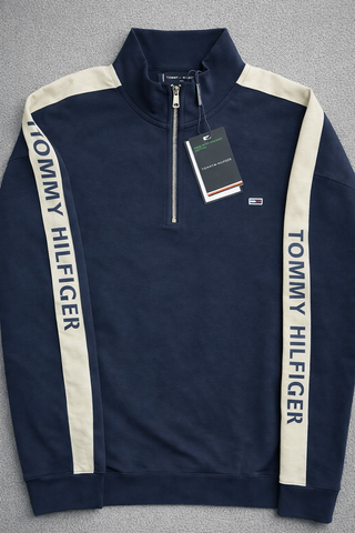 TOMMY HILFIGER Sudadera – NUEVA CON ETIQUETAS Prenda nueva y sin uso. Con etiquetas originales. • Talla: M , varias tallas disponibles. • Algodón orgánico • Color azul marino • Media cremallera plateada • Logo bordado en el pecho • Detalle “TOMMY HILFIGER” en las mangas Modelo moderno, con un estilo casual premium fácil de combinar. Envío rápido y bien protegido.