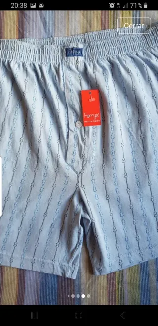 Boxer de la marca Ferrys en color azul. - Diseño con estampado de rombos y rayas verticales. - Cintura elástica. - Cierre de botón en la bragueta. Boxer o calzoncillo para hombre, de algodón, nuevo con etiqueta. Ver medidas Cintura sin estirar 38 cm Largo 38 cm Tiro 30 cm #ferrys #calzoncillos #boxer #ferry #boxer60 #talla60 #pantalonpijama #calvinklein #zd