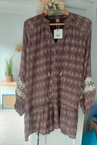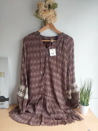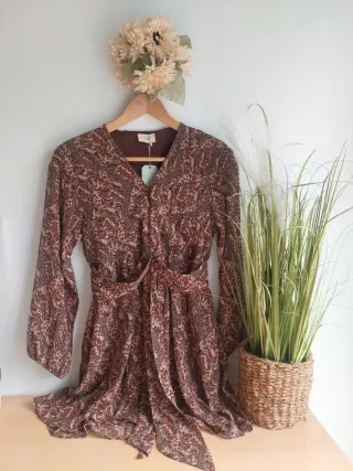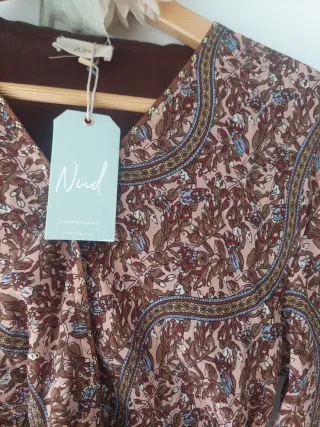Vestido muje4 nuevo con etiquetas, impecable, ideal para regalar. Marca Nüd by Nekane, diseñado en España. Precioso y ligero, estampado floral en tonos marrones y rosas y con ribete cuello dorado. Medidas: hombro a hombro 49 cm., de sisa a sisa 45 y de largo 80 cm. Etiqueta indica Talla M ( 38). Manga larga y forro interior. Ideal primavera, entretiempo. Perfecto para un estilo bohemio elegante, cómodo y con un diseño atemporal. NUEVO con etiquetas, ideal regalo. Precio original 99€. #vestido #vestidomujer #primavera #vestidonekane #vestidonuevo #nekane #vestidoflores #floraldress