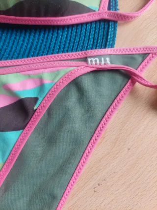 Conjunto de bikini con estampado de camuflaje. NUEVO. Con etiquetas. Marca Mjt. - Diseño con detalles en rosa. - Tirantes y detalles de borde en rosa - Reversible. - Talla XL ( 42). Marca Mjt, calidad y buenos acabados. Nuevo con etiquetas. #biquini #biquinimujer #biquiniestampado #bikini #bikinidonna #bañador #bañadormujer #talla42 #tallaxl