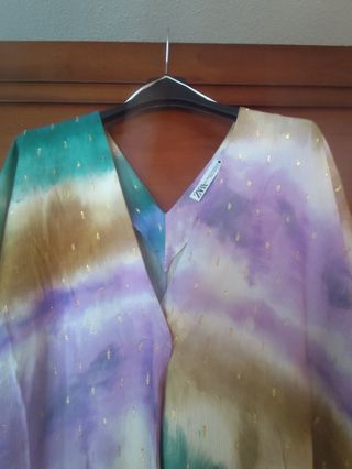 Vestido de Zara tipo túnica. Nuevo sin etiquetas. Lo lavé y nunca lo estrene. Talla XL. Medidas en las fotos. Varios colores con toques dorados. Queda muy molón puesto.