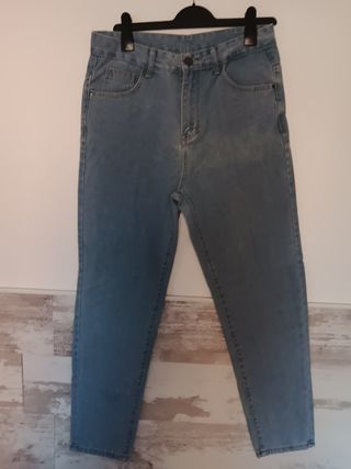 Jeans azules, en perfecto estado sin estrenar. - Cintura alta cm 39 - Cadera 56 cm. - Desde cintura hasta entrepierna 30 cm - Corte recto. - Talla pone S en la etiqueta, pero son de mi hija y ella tiene una talla 40.