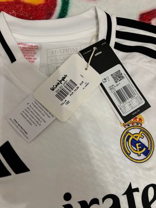 Camiseta oficial del Real Madrid de la temporada 2024. - Diseño clásico en blanco con detalles negros. - Tecnología Aeroready para mayor transpirabilidad. - Talla 11/12 - Dorsal 2 Paula - Nueva con etiquetas