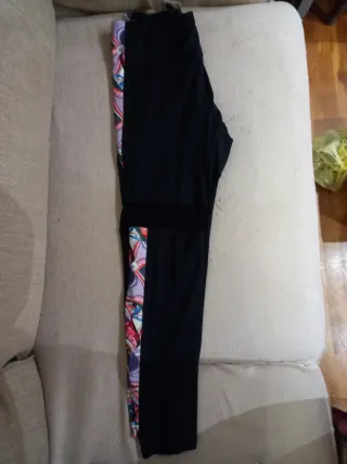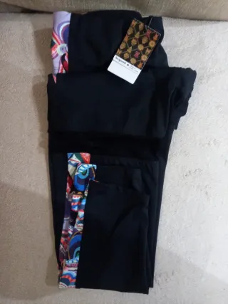 Leggings con etiqueta , sin estrenar, marca Desigual, calidad superior, talla XL, con un diseño llamativo. - Detalle de estampado en los laterales, y zona semi transparente según foto - Cintura elástica para un mejor ajuste, un poco alta. - se puede lavar en lavadora, 73% poliester, 24% elástano , 3% poliamida
