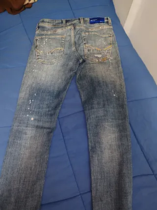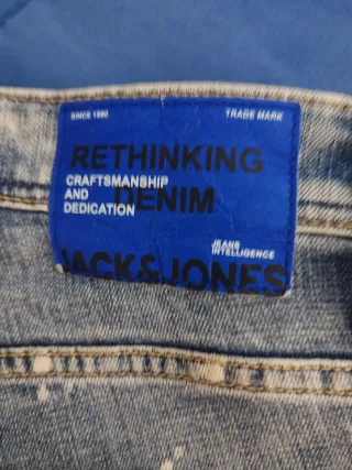 Vaqueros de la marca Jack & Jones en tono azul claro. Presentan un diseño moderno y cómodo. Talla 29, y 34 de largo. - Etiqueta de cuero con el logo de la marca. - Detalle de costuras reforzadas.