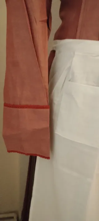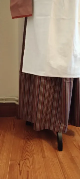 Conjunto tradicional vasco de neska con estampado de rayas. - Falda a rayas, cintura ajustable - Camisa puntilla lino -Delantal lino crudo -Pañuelo lino. Nuevo, con etiquetas. Talla 46/48