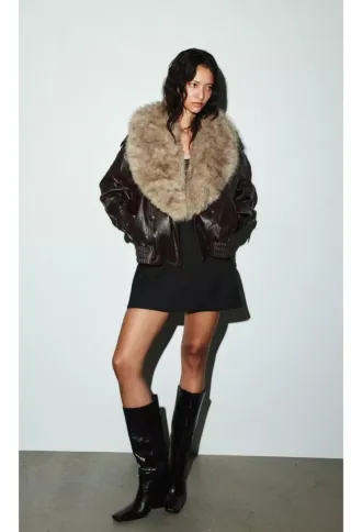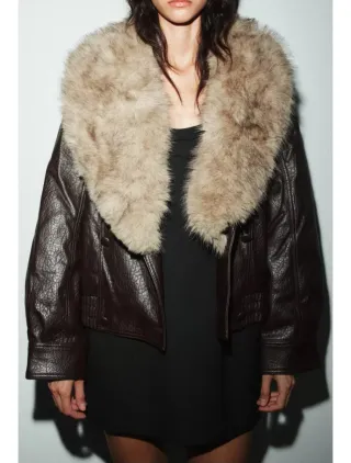Cazadora marron oscuro de efecto piel con un diseño moderno y versátil. Cuello desmontable de pelo para diferentes estilos. Nueva con etiqueta 🏷 Este producto talla grande Envío rápido