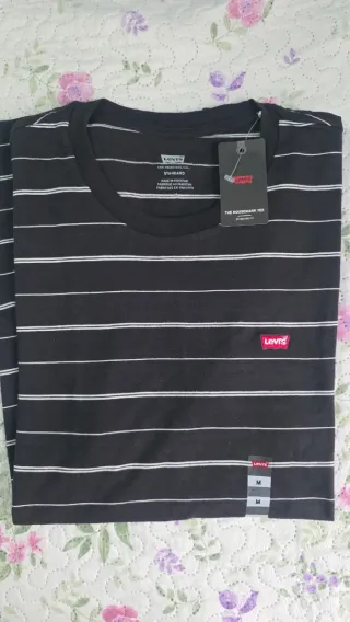 Camiseta Levi's Negra Rayas Blancas Talla M Nueva