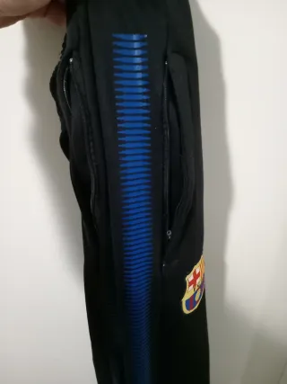 Pantalón de chándal del FC Barcelona. Talla L. (ver etiqueta) Ajuste con goma en la cintura. - Diseño con franjas azules laterales. - Cremalleras en los bolsillos.