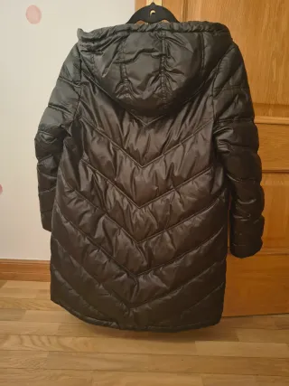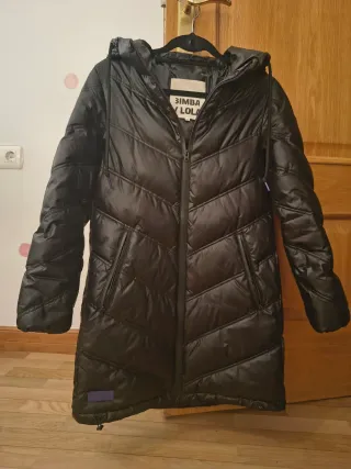 Abrigo plumífero largo de la marca Bimba y Lola. - Diseño acolchado con líneas diagonales. - Capucha integrada. - Cierre de cremallera. - Bolsillos laterales con cremallera. - Detalle de etiqueta en la parte inferior.