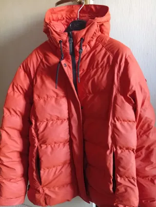 Chaqueta de la marca Rip Curl en talla L. Diseño moderno y funcional. - Capucha ajustable. - Cierre de cremallera y botones. - Bolsillos frontales con solapa. - Puños ajustables. - forro interior plumífero En perfecto estado , indica una talla M la etiqueta, pero en realidad es como una L