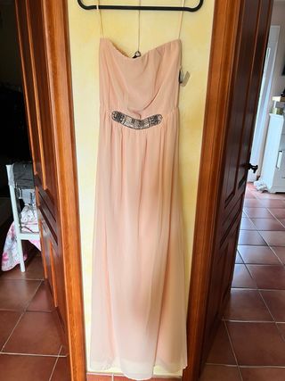 Vestido ZARA palabra de honor, está nuevo sin estrenar y con su etiqueta. talla S es de sedita, color rosa pastel. En la parte de arriba tiene un elástico. y cuenta con un detalle que cae debajo del pecho.