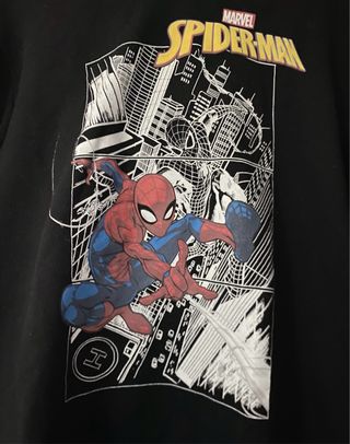 Sudadera gris con estampado de Spiderman de Marvel. 46cm de ancho y 66cm de largo. Aunque en la etiqueta ponga talla L es estrecha.
