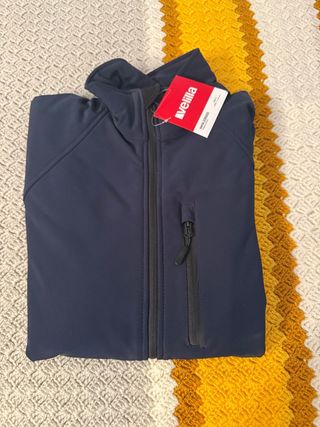 Chaqueta de tejido softshell, ideal para actividades al aire libre. nuevo a estrenar con etiquetas. bolsillos laterales con cremalleras, bolsillos interiores y cierre de velcro en los puños - Cierre de cremallera frontal. - Bolsillo con cremallera en el pecho. - Cuello alto.
