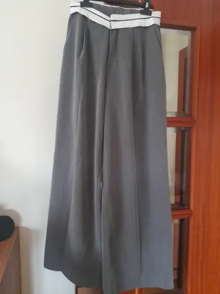 Pantalón de vestir de corte ancho y elegante. No tiene la etiqueta, por lo que no sé ya que lo compré aquí pero me queda grande yo uso 34-36), por lo que será 38 En muy buen estado, sólo tiene un poco ajeadilla la parte de la cintura blanca - Diseño de talle alto. - Cintura con detalle de banda blanca y negra. - Pinzas delanteras para mayor volumen. - Bolsillos laterales.