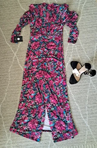 Nuevo. Con las etiquetas puestas. Vestido para eventos con estampado floral a estrenar. Talla única pero da talla al ser elástico. Yo mido 1,65m y peso 55kg. Yo creo que equivale a una S/M pero es muy adaptable gracias a su tela. Queda muy bonito para un evento tipo boda, comunión, bautizo... con unos complementos viste mucho. Tiene abertura delantera. Es de manga larga pero queda muy bonito remangado. Tengo varios vestidos del estilo en mi armario. Pásate a verlos!! #vestidoverano #vestidoprimavera #vestidolargo #vestidolargoS #vestidoestampado #vedtidoestampadoS #vestidoestampadoflores #vestidobodaS #vestidoboho #vestidocomu