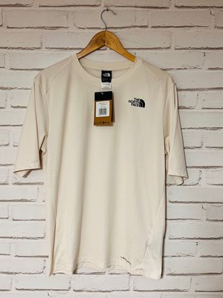 Camiseta técnica The North Face para trail running. Diseñada para ofrecer comodidad y rendimiento en tus carreras. A estrenar con etiquetas. - Tejido ligero y transpirable. - Corte que permite libertad de movimiento. - Logo de la marca en el pecho. - Color blanco duna.