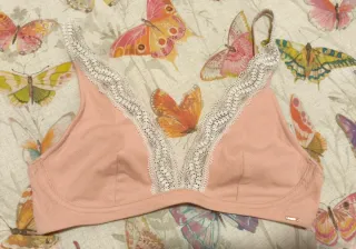 Sujetador sin aros, color salmón y puntilla blanca. Nuevo sin etiquetas.