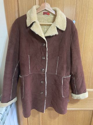 Abrigo tipo piel de oveja color marrón vintage. No tiene etiqueta de materiales, así que no se si es piel de verdad, pero creo que no. Muy buen estado Largo 78 cm Sirve para una talla S/M Marca Selvatsi Sport Stgi Dos bolsillos laterales