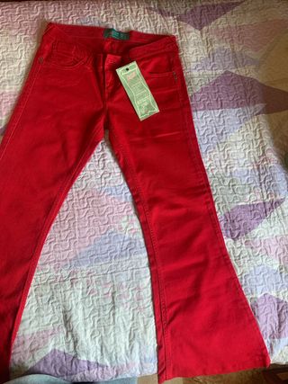 Pantalón vaquero de campana en color rojo. - Cierre de cremallera y botón. - Sin Usar con etiqueta.