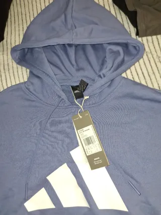 Sudadera con capucha de Adidas en color púrpura. Gran logo blanco en la parte delantera. - Con etiquetas, nunca se ha usado. Nueva a estrenar. - Capucha con cordones. - Puños y bajo elásticos. - Tejido suave y cómodo.