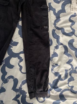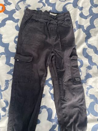 Pantalón cargo de color negro, con un diseño moderno y práctico. - Cintura elástica con cordón. - Bolsillos cargo laterales. - Detalle de etiqueta en uno de los bolsillos.
