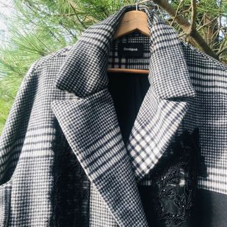 Abrigo Desigual, modelo Detroit, talla 44, corte ancho. Prácticamente nuevo. Solo se ha usado 1 vez Sin etiquetas interiores. “Este abrigo es grande. En todos los sentidos. Comenzando con el patrón de corte masculino de gran tamaño que es tan moderno, y termina con el parche de cuadros combinado con adornos de encaje a juego. Una mezcla muy original y elegante capaz de elevar cualquier estilismo al máximo poder. Solapas de pico Doble botonadura Dos bolsillos Parche de cuadros y encaje Oversize Composición interior del tejido: 100% POLIESTER Composición exterior del tejido: 44% LANA, 1% ALGODÓN, 46% POLIESTER, 5% ACRÍLICO, 2% VISCOSA, 2% POLIAMIDA” (fuente de la descripción: web de Amazon)