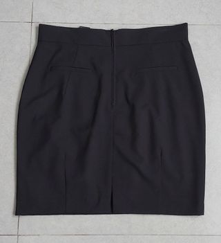 Falda negra de H&M. Pone talla 46 pero no da mucha talla, he puesto fotos con las medidas. Nueva, con la etiqueta La marca, talla, composición y medidas pueden verse en las fotos