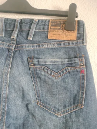 Vaqueros de corte recto de la marca Replay. Cintura 42 cm Largo 104 cm - Diseño clásico. - Bolsillos traseros. - Etiqueta de cuero en la parte trasera.