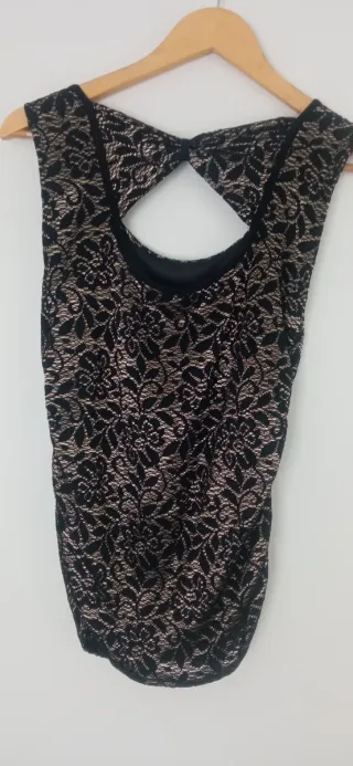 Precioso top con un diseño elegante, ideal para lucir en eventos especiales. - Tejido con encaje floral. - Abertura en la espalda con diseño. - Frunce lateral. - Forro interior en la parte delantera, no transparente. - Perfecto estado. Nunca puesto aunque no conserva etiqueta. Para cualquier aclaración ponte en contacto con total confianza! Hago envíos y entrego en persona.