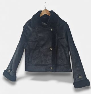 ideal para aportar un toque urbano y elegante a cualquier look de otoño e invierno. Su diseño tipo biker, combinado con el interior forrado efecto borreguito, ofrece estilo, abrigo y comodidad en una sola prenda. Cuenta con cierre frontal cruzado con botones, bolsillos funcionales y detalles bien definidos que realzan la silueta. El acabado exterior imita la piel con un tacto suave y resistente, mientras que el interior cálido la convierte en una opción perfecta para los días fríos. La chaqueta está totalmente nueva y conserva las etiquetas originales, lista para estrenar. Una prenda versátil y atemporal que combina fácilmente.