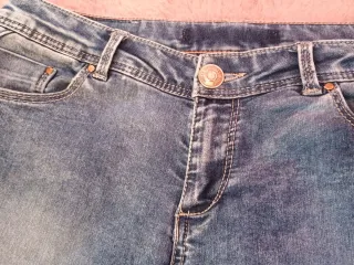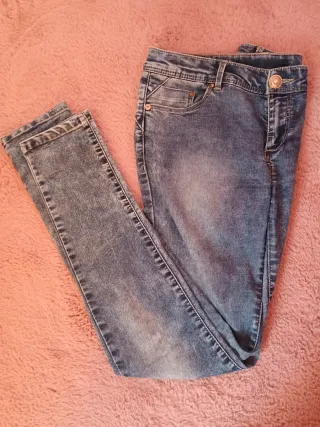 Pantalón vaquero largo de corte ajustado. - Diseño moderno y versátil. - Tejido denim de calidad. No pone talla pero equivale a una S, ya que yo soy una 38-40 y ya no le vale, le tengo desde hace años y era muy cómodo pero dejó de valerme y lleva tiempo guardado sin usarse, yo no le di mucho uso a pesar de lo cómodo que era. El único defecto que tiene es el desgaste de la etiqueta de atrás debido al tiempo (hay foto). Acepto negociar el precio