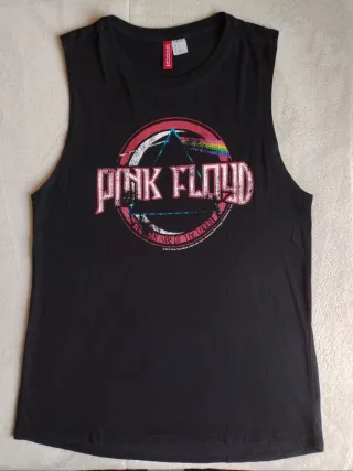 Camiseta de tirantes negra con el diseño de Pink Floyd (grupo rock) en el centro de la parte frontal de la prenda. Talla: S. Unisex. La etiqueta interior está cortada.