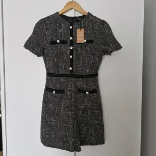 Vestido SHEIN Tweed Negro/Gris Talla XS