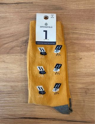 Calcetines de la marca Springfield con un divertido estampado. - Diseño con estampado de saleros. - Tejido cómodo y de calidad. - Talla M (equivalente a 39-42 EUR).