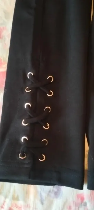 Pantalón negro recto de corte estrecho y largo hasta debajo del tobillo.,NUEVO sin etiqueta ADMITO OFERTAS Hace una figura espectacular es precioso porque lleva remaches metalizados blancos con cordones cruzados tejido de algodón es de super calidad .La cinturilla es ancha 3 dedos. Rebajado el 2 diciembre 2025 - Detalle de cordones en los bajos. - Diseño moderno y ajustado.