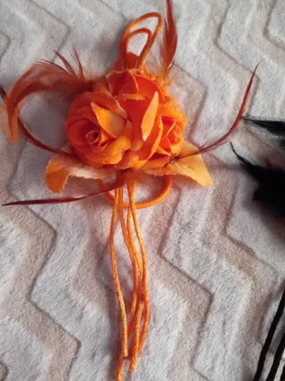 Tocados de fiesta 1 en color negro y 1 en color naranja. Ambos con plumas, brillantina y raso. A ESTRENAR PERFECTO ESTADO Llevan broche para ponerlos en ropa también. Se venden envasados. Se entrega en persona Visita mi página para ver otras ofertas Se venden los 2 a 7€