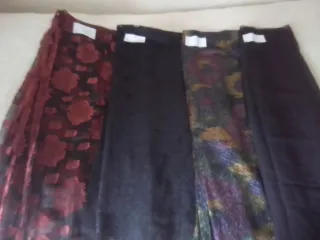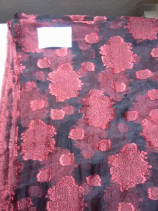 Conjunto de telas con diseños festivos y elegantes, ideales para proyectos de costura o decoración. ALTA COSTURA A ESTRENAR PERFECTO ESTADO - Tela con estampado en tonos dorados, morados y verdes. - Encaje negro -2 Cortes de punto de fantasía de fiesta -Gasa negra con bodoques bordados - Gasa bordada y organza negra transparente y bordados con motivos florales en color burdeos sobre fondo negro. Medidas en las fotos y texturas Se entrega en persona Visita mi página para ver otras ofertas