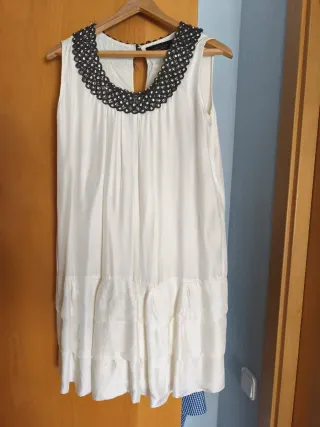 Elegante vestido de fiesta de Zara, ideal para eventos especiales. Se vende solamente en quince euros costó 45 con rebajas es muy bonito tanto para ir de fiesta como para un día cualquiera salir con él lleva unos volante muy graciosos en la parte de abajo hay tres fotos - Diseño sin mangas. - Cuello adornado con pedrería. - Falda con volantes en capas.