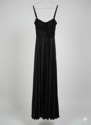 Vestido de fiesta negro, talla M, usado solo una vez y en estado impecable. Marca Nina Piu USA Tiene tirantes finos, falda plisada y un detalle elegante en la cintura que estiliza mucho. Ideal para bodas, fiestas, cenas o eventos formales. Clásico, cómodo y muy favorecedor.