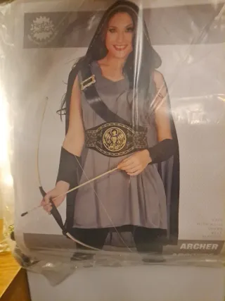 Este disfraz de arquera es perfecto para carnavales o fiestas temáticas. Incluye: capa con capucha, vestido,cinturón y mangas. NUEVOS SIN ESTRENAR TALLA L. Varias unidades misma talla - Diseño inspirado en una cazadora. - Detalles dorados en el cinturón - Capa con capucha integrada.